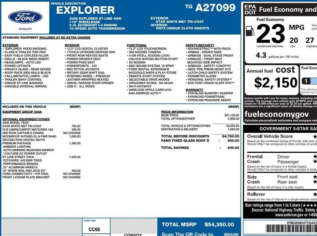 Third Row Seat, Navigation, Power Liftgate, Rear Air, Heated Driver Seat. Ford ST-Line with Star White Metallic Tri-Coat exterior and Onyx interior features a 4 Cylinder Engine with 300 HP at 5500 RPM*.