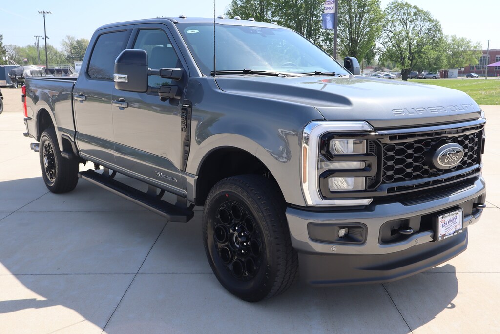 - ENGINE: 6.7L 4V OHV POWER STROKE V8 TURBO DIESEL B20 -inc: manual push-button engine-exhaust braking and Operator Commanded Regeneration (OCR) 250 Amp Alternator 34 Gallon Fuel Tank GVWR: 11 499 lb Payload Package 3.31 Axle Ratio Dual AGM 68 AH Battery,Four Wheel Drive,Tow Hitch,Power Steering,ABS,4-Wheel Disc Brakes,Brake Assist,Aluminum Wheels,Tires - Front All-Season,Tires - Rear All-Season,Conventional Spare Tire,Tow Hooks,Heated Mirrors,Power Mirror(s),Integrated Turn Signal Mirrors,Power Folding Mirrors,Rear Defrost,Intermittent Wipers,Variable Speed Intermittent Wipers,Rain Sensing Wipers,Privacy Glass,Fog Lamps,Automatic Highbeams,Daytime Running Lights,Automatic Headlights,LED Headlights,AM/FM Stereo,Premium Sound System,HD Radio,Steering Wheel Audio Controls,Auxiliary Audio Input,Pass-Through Rear Seat,Rear Bench Seat,Adjustable Steering Wheel,Heated Steering Wheel,Universal Garage Door Opener,Cruise Control,Climate Control,Multi-Zone A/C,A/C,Power Driver Seat,Power Passenger Seat,Bucket Seats,Heated Front Seat(s),Driver Adjustable Lumbar,Passenger Adjustable Lumbar,Cooled Front Seat(s),Premium Synthetic Seats,Auto-Dimming Rearview Mirror,Driver Vanity Mirror,Passenger Vanity Mirror,Driver Illuminated Vanity Mirror,Passenger Illuminated Visor Mirror,Floor Mats,Blind Spot Monitor,Cross-Traffic Alert,Rear Collision Mitigation,WiFi Hotspot,Adjustable Pedals,Security System,Immobilizer,Stability Control,Front Side Air Bag,Front Collision Mitigation,Rear Parking Aid,Aerial View Display System,Tire Pressure Monitor,Front Head Air Bag,Rear Head Air Bag,Driver Air Bag,Passenger Air Bag,Child Safety Locks,Back-Up Camera