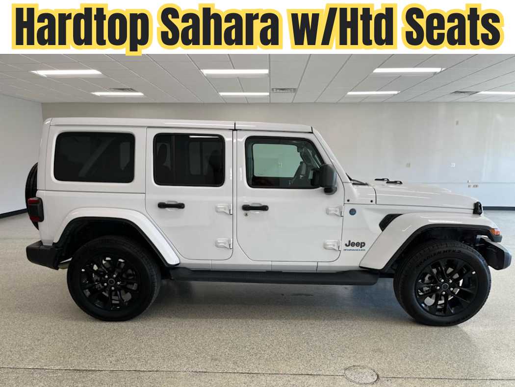 Engine: 2.0L 4, Transmission: Automatic, Mileage: 10,290 miles miles, Exterior Color: Bright White Clearcoat, Interior Color: Black,Stock #: J260023, Drive Line: 4WD, Location: Ridings Chrysler Dodge Jeep Ram, Comments: Sahara trim. Heated Seats, Onboard Communications System, iPod/MP3 Input, Satellite Radio, Back-Up Camera, BODY COLOR 3-PIECE HARD TOP, ENGINE: 2.0L I4 DOHC DI TURBO PHEV, TRANSMISSION: 8-SPEED AUTO 8P75PH PHE... Alloy Wheels