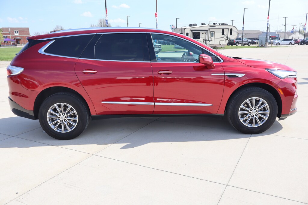 - ENHANCED AUTOMATIC EMERGENCY BRAKING vehicle forward movement brake pre-fill and Intelligent Brake,CHERRY RED TINTCOAT Includes Pitch Dark Night lower exterior accent color.),SEATS FRONT BUCKETS (STD),WHEELS 18 (45.7 CM) ALUMINUM (STD),REAR PEDESTRIAN ALERT,DARK GALVANIZED WITH EBONY INTERIOR ACCENTS PERFORATED LEATHER-APPOINTED SEATS,TRANSMISSION 9-SPEED AUTOMATIC (STD),HD SURROUND VISION,REAR CAMERA MIRROR INSIDE REARVIEW AUTO-DIMMING with full camera display,ADAPTIVE CRUISE CONTROL,AXLE 3.49 FINAL DRIVE RATIO,TECHNOLOGY PACKAGE includes (KSG) Adaptive Cruise Control (UGN) Enhanced Automatic Emergency Braking (DRZ) Rear Camera Mirror (UV2) HD Surround Vision and (UKK) Rear Pedestrian Alert,TIRES 255/65R18 SL ALL-SEASON BLACKWALL (STD),ENGINE 3.6L V6 SIDI VVT STOP/START (310 hp [231 kW] @ 6800 rpm 266 lb-ft of torque [359 N-m] @ 2800 rpm) (STD),AUDIO SYSTEM 8 DIAGONAL BUICK INFOTAINMENT SYSTEM includes multi-touch display AM/FM/SiriusXM stereo Bluetooth streaming audio for music and most phones Android Auto and Apple CarPlay capability for compatible phones advanced voice recognition in-vehicle apps personalized profiles for infotainment and vehicle settings (STD),LPO WHEEL LOCKS CHROME THATCHAM includes 4 locks and 1 key,ESSENCE PREFERRED EQUIPMENT GROUP Includes Standard Equipment,REAR CAMERA MIRROR WASHER,Rear Parking Aid,Blind Spot Monitor,Lane Departure Warning,Cross-Traffic Alert,Lane Keeping Assist,Front Collision Mitigation,Front Collision Warning,Automatic Highbeams,Keyless Start,Front Wheel Drive,Power Steering,ABS,4-Wheel Disc Brakes,Aluminum Wheels,Tires - Front All-Season,Tires - Rear All-Season,Temporary Spare Tire,Rear Spoiler,Heated Mirrors,Power Mirror(s),Integrated Turn Signal Mirrors,Automatic Highbeams,Automatic Headlights,Privacy Glass,Intermittent Wipers,Intermittent Wipers,Remote Trunk Release,Power Liftgate,Hands-Free Liftgate,AM/FM Stereo,Satellite Radio,MP3 Capability,Bluetooth Connection,Auxiliary Audio Input,Smart Device Integration,Requires Subscription,Satellite Radio,Requires Subscription,Bluetooth Connection,Smart Device Integration,WiFi Hotspot,MP3 Capability,Auxiliary Audio Input,Bucket Seats,3rd Row Seat,Bucket Seats,Rear Bucket Seats,Leather Seats,Heated Front Seat(s),Power Driver Seat,Power Passenger Seat,Driver Adjustable Lumbar,Passenger Adjustable Lumbar,3rd Row Seat,Floor Mats,Adjustable Steering Wheel,Leather Steering Wheel,Heated Steering Wheel,Cruise Control,Steering Wheel Audio Controls,Power Windows,Tire Pressure Monitor,Power Door Locks,Keyless Entry,Power Door Locks,Universal Garage Door Opener,Cruise Control,Remote Engine Start,Security System,Security System,Immobilizer,Climate Control,Multi-Zone A/C,A/C,Rear A/C,A/C,Rear A/C,A/C,Rear Defrost,Auto-Dimming Rearview Mirror,Driver Vanity Mirror,Passenger Vanity Mirror,Driver Illuminated Vanity Mirror,Passenger Illuminated Visor Mirror,Traction Control,Front Collision Mitigation,Front Collision Warning,Traction Control,Stability Control,Daytime Running Lights,Driver Air Bag,Passenger Air Bag,Front Side Air Bag,Front Head Air Bag,Rear Head Air Bag,Passenger Air Bag Sensor,Telematics,Requires Subscription,Back-Up Camera,Rear Parking Aid,Front Collision Warning,Front Collision Mitigation,Cross-Traffic Alert,Blind Spot Monitor,Lane Departure Warning,Lane Keeping Assist,Child Safety Locks,Driver Restriction Features,Tire Pressure Monitor,Telematics,Requires Subscription