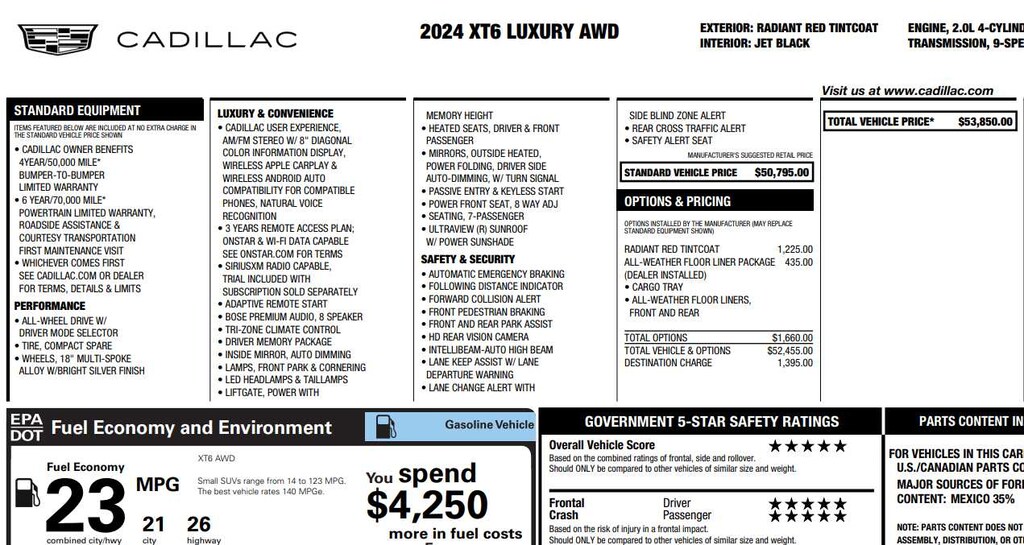 Third Row Seat, Sunroof, Panoramic Roof, All Wheel Drive, Power Liftgate Cadillac AWD Luxury with Radiant Red Tintcoat exterior and Jet Black interior features a 4 Cylinder Engine with 235 HP at 5000 RPM*.