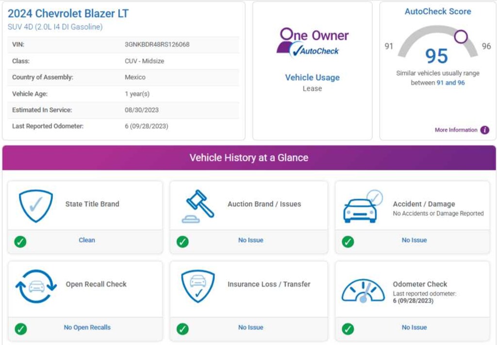 AutoCheck One Owner Reduced from $29,490. This Blazer is priced $900 below Kelley Blue Book.