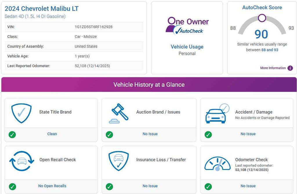 Used 2024 ChevroletMalibu LT Sedan FWD
