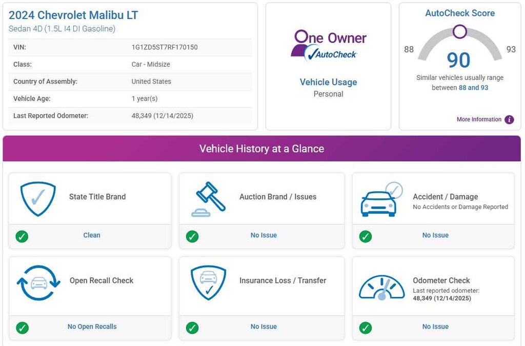 Used 2024 ChevroletMalibu LT Sedan FWD