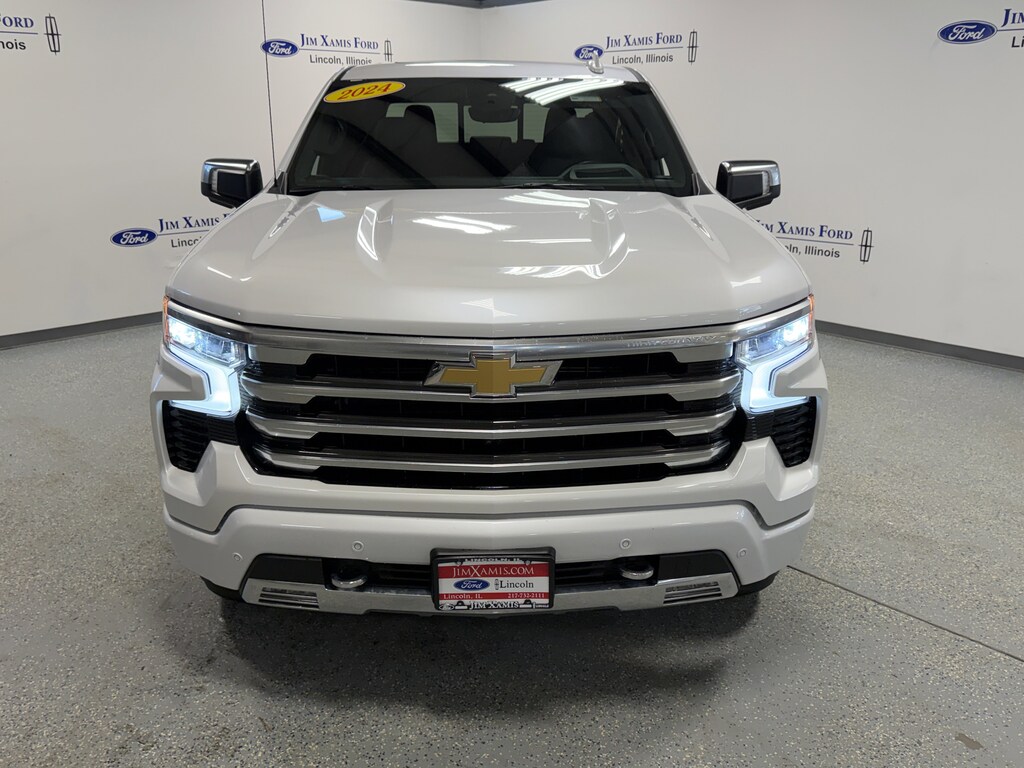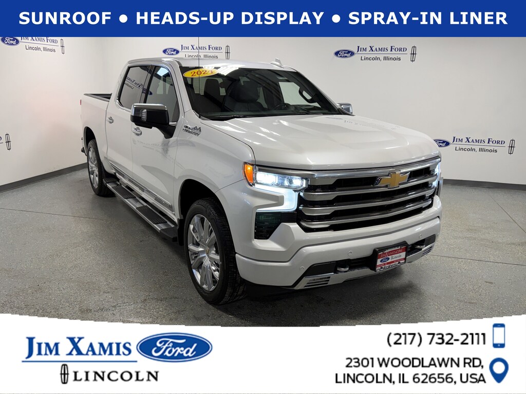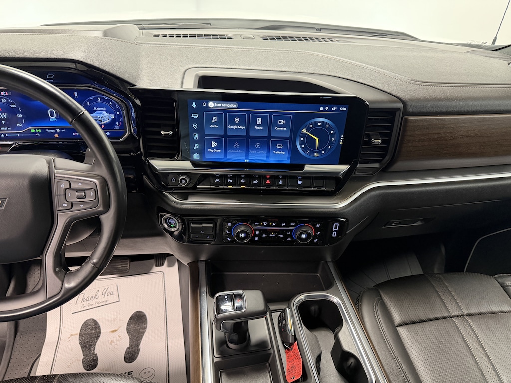 **MOONROOF/SUNROOF**, **BLIND SPOT MONITORING**, **REMOTE START**, **LEATHER**, **BLUETOOTH**, **HEATED STEERING WHEEL**, **HEATED SEATS**, 10-Speed Automatic, 4WD, Jet Black Leather, 10-Way Power Driver Seat w/Lumbar, 10-Way Power Passenger Seat Adjuster w/Lumbar, 12.3 Multicolor Reconfigurable Digital Display, 120-Volt Bed Mounted Power Outlet, 120-Volt Interior Power Outlet, 2 USB Data Ports, 2nd Row Heated Outboard Seats, Adaptive Cruise Control, All-Weather Floor Liner (LPO), Auto-Dimming Inside Rear-View Mirror, Auto-Locking Rear Differential, Bed View Camera, Bluetooth® For Phone, Body-Color Painted Mirror Caps, Chevrolet Connected Access Capable, Chevytec Spray-On Black Bedliner, Chrome Assist Steps, Chrome Recovery Hooks, Color-Keyed Carpeting Floor Covering, Deep-Tinted Glass, Driver Memory, Dual Exhaust w/Polished Outlets, Dual Rear USB Ports (Charge Only), Electric Rear-Window Defogger, Electrical Steering Column Lock, Floor Mounted Center Console, Front Carpeted Floor Mats, Front LED Fog Lamps, Front Rain-Sensing Wipers, HD Surround Vision, Heated Driver & Front Outboard Passenger Seats, Heated Steering Wheel, High Capacity Suspension Package, High Country Premium Package, Hitch Guidance, Hitch Guidance w/Hitch View, In-Vehicle Trailering System App, Integrated Trailer Brake Controller, Keyless Open & Start, LED Cargo Area Lighting, OnStar & Chevrolet Connected Services Capable, Outside Heated Power-Adjustable Mirrors, Perimeter Lighting, Power Front Passenger Windows w/Express Up/Down, Power Front Windows w/Driver Express Up/Down, Power Rear Windows w/Express Down, Power Sliding Rear Window w/Rear Defogger, Power Sunroof, Power Tailgate, Power Tilt & Telescoping Steering Column, Preferred Equipment Group 3LZ, Rear Carpeted Floor Mats, Rear Cross Traffic Braking, Rear Pedestrian Alert, Rear Wheelhouse Liners, Remote Vehicle Starter System, Safety Alert Seat, SiriusXM w/360L, Standard Tailgate, Steering Wheel Audio Controls, Theft Deterrent System (Unauthorized Entry), Trailer Camera Provisions, Trailer Side Blind Zone Alert, Trailering Package, Ultrasonic Front & Rear Park Assist, Universal Home Remote, Up-Level Rear Seat w/Storage Package, Ventilated Driver & Front Passenger Seats, Wheels: 22 x 9 Painted Aluminum, Wi-Fi Hot Spot Capable, Wrapped Steering Wheel.
