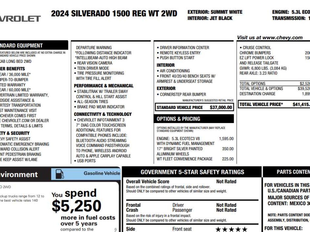 Back-Up Camera, Onboard Communications System, Keyless Start, WiFi Hotspot, Lane Keeping Assist. Chevrolet Work Truck with Summit White exterior and Jet Black interior features a 8 Cylinder Engine with 310 HP at 5600 RPM*.
