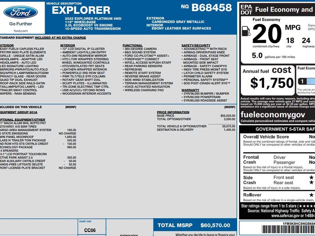Leather Seats, Third Row Seat, Navigation, Quad Bucket Seats, Rear Air. Ford Platinum with Carbonized Gray Metallic exterior and Ebony interior features a V6 Cylinder Engine with 318 HP at 6500 RPM*.