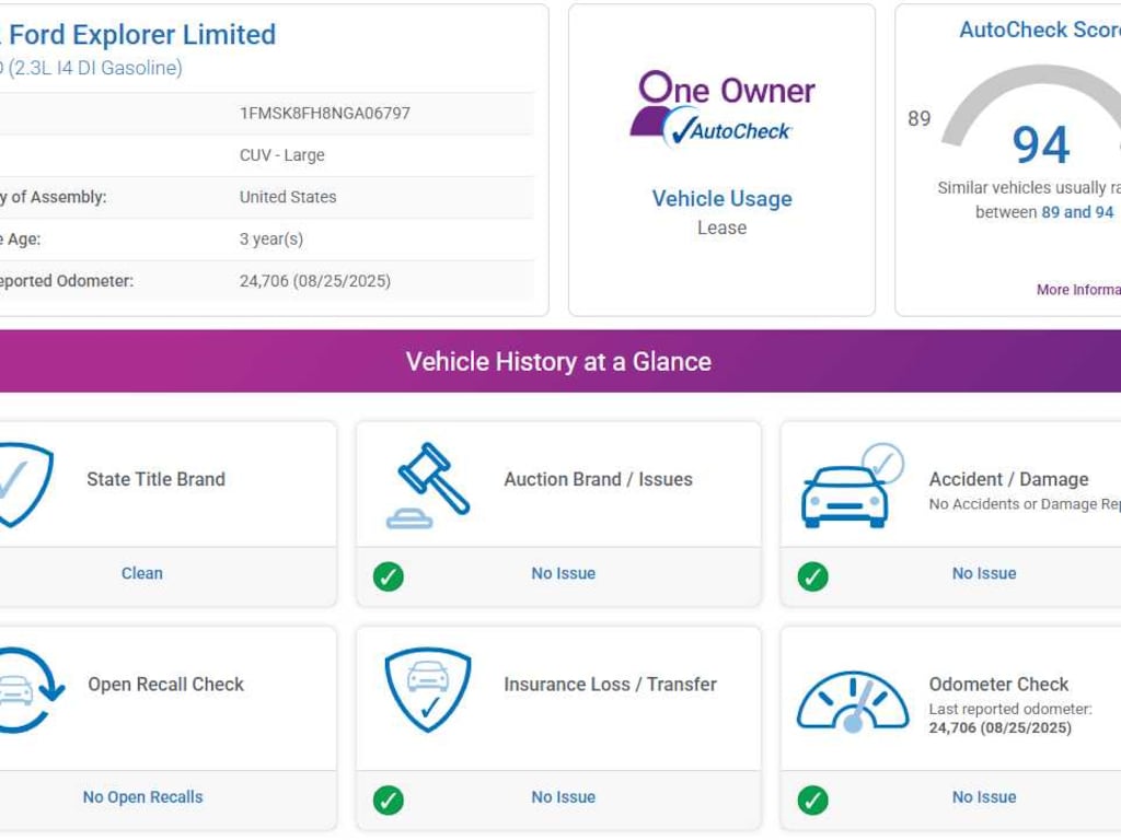 AutoCheck One Owner Reduced from $37,990.