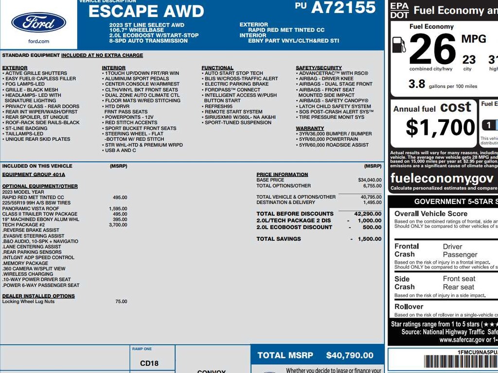 Power Liftgate, Heated Driver Seat, Remote Engine Start, Dual Zone A/C, Brake Actuated Limited Slip Differential. Ford ST-Line Select with Rapid Red Metallic Tinted Clearcoat exterior and Ebony interior features a 4 Cylinder Engine with 192 HP at 6250 RPM*.