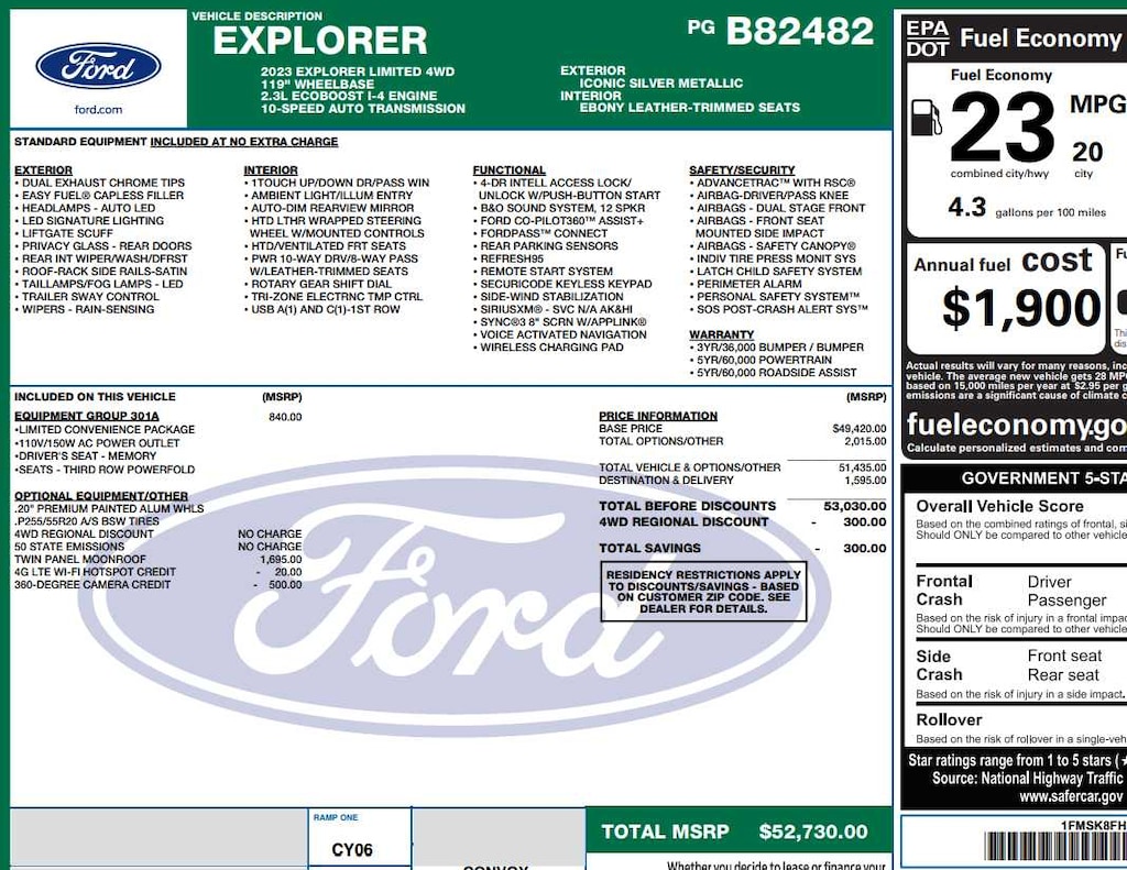 - Fuel economy combined: 23mpg
