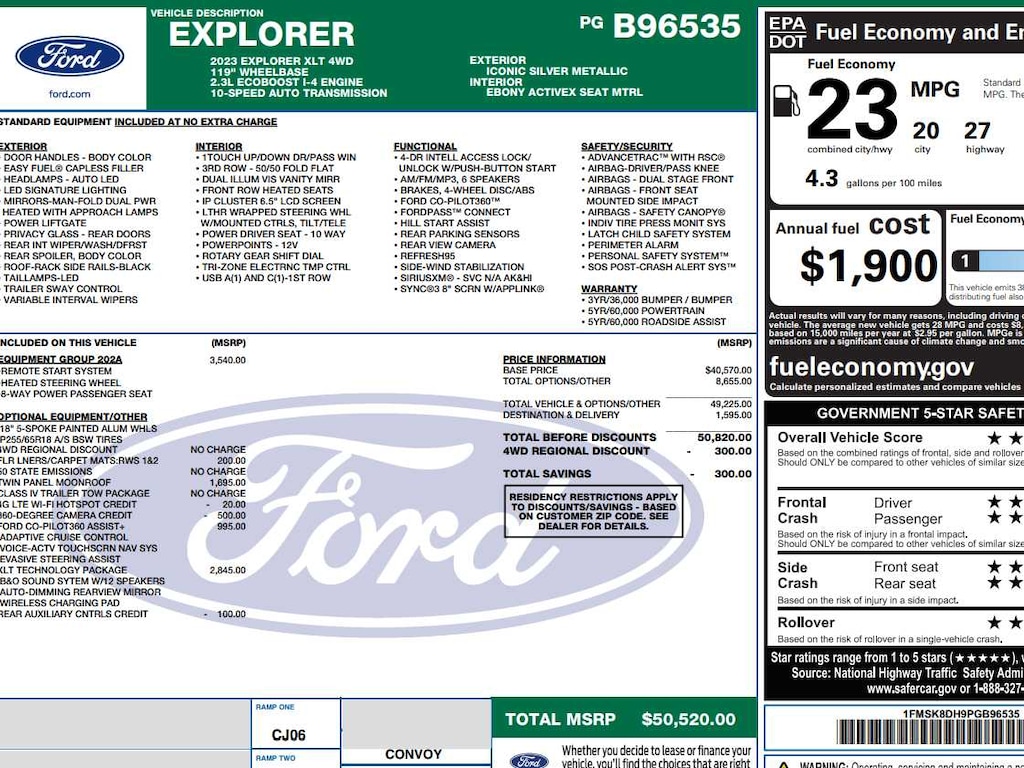 Third Row Seat, Quad Bucket Seats, Power Liftgate, Rear Air, Heated Driver Seat Ford XLT with Iconic Silver Metallic exterior and Ebony interior features a 4 Cylinder Engine with 300 HP at 5500 RPM*.