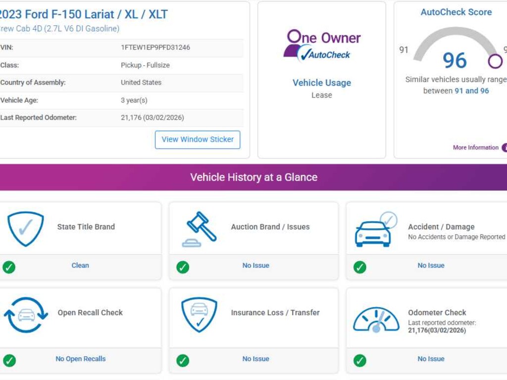 AutoCheck One Owner Reduced from $43,990.