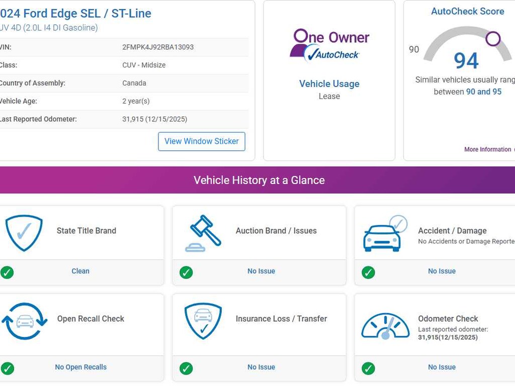 Used 2024 FordEdge SEL SUV AWD