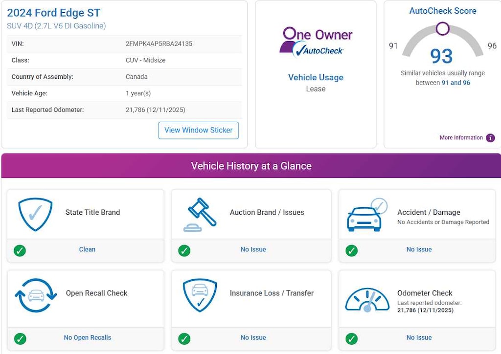 AutoCheck One Owner