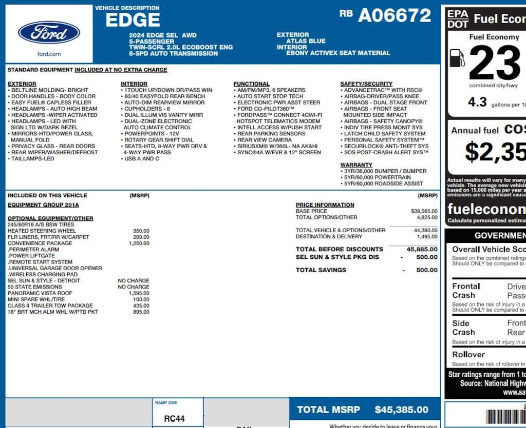 Heated Driver Seat, Back-Up Camera, Satellite Radio, iPod/MP3 Input, Onboard Communications System. Ford SEL with Atlas Blue Metallic exterior and Ebony interior features a 4 Cylinder Engine with 250 HP at 5500 RPM*.