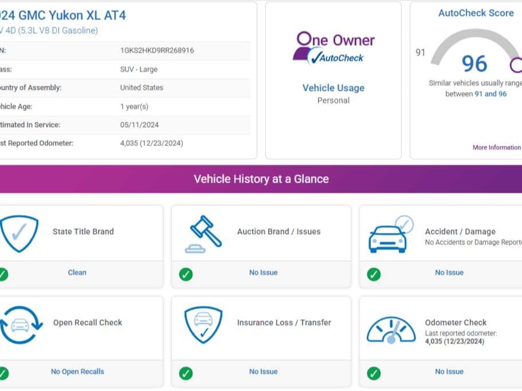 AutoCheck One Owner This Yukon XL is priced $4,600 below Kelley Blue Book.