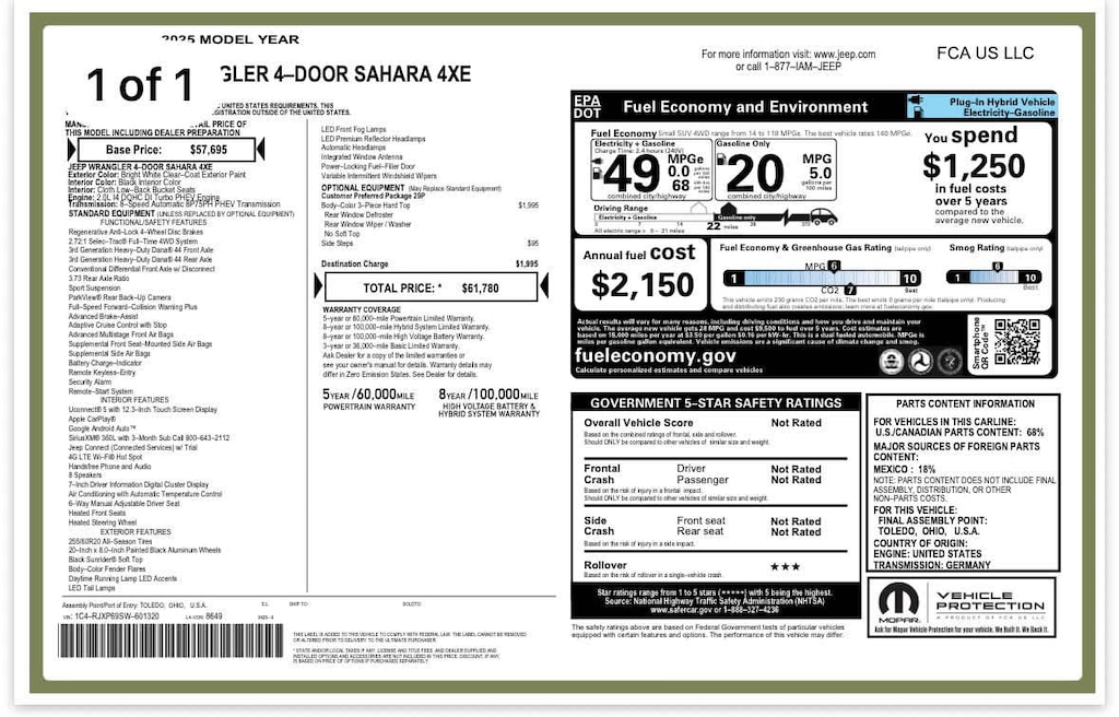 Used 2025 JeepWrangler 4xe Sahara 4x4 4WD