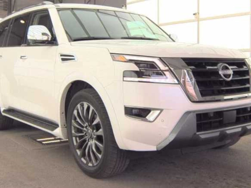 Leather Seats, Navigation, Sunroof, 4x4, Power Liftgate. Nissan Platinum with Aspen White Tricoat exterior and Black interior features a 8 Cylinder Engine with 400 HP at 5800 RPM*.