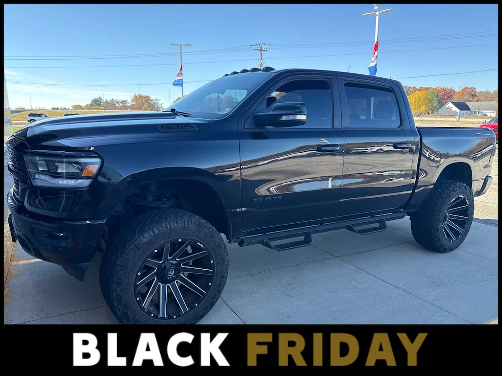 BIG HORN LEVEL 2 EQUIPMENT GROUP Radio: Uconnect 4 w/8.4 Display, Rear Window Defroster, Integrated Center Stack Radio, ParkSense Front/Rear Park Assist w/Stop, Rear View Auto Dim Mirror, Power Adjustable Pedals, Rear Power Sliding Window, Rear Dome w/On/Off Switch Lamp, Glove Box Lamp, Power 4-Way Driver Lumbar Adjust, 115V Auxiliary Rear Power Outlet, Power 8-Way Driver Seat, 2 USB Full Function/Charge Only Media Hub, Heated Front Seats, Heated Steering Wheel, 8.4 Touchscreen Display, Foam Bottle Insert (Door Trim Panel), Class IV Receiver Hitch, Dampened Tailgate, Security Alarm, Power Heated Fold Away Mirrors, Big Horn IP Badge, Remote Start System, SiriusXM Satellite Radio, 400W Inverter, Air Conditioning ATC w/Dual Zone Control, 115V Auxiliary Power Outlet, Cluster 7.0 TFT Color, BLACK APPEARANCE PACKAGE Tires: 275/55R20 OWL All Season, Exterior Mirrors w/Supplemental Signals, Black Headlamp Bezels, Power Heated Fold-Away Mirrors, Body Color Door Handles, Exterior Mirrors Courtesy Lamps, Auto Dim Exterior Driver Mirror, Black Exterior Truck Badging, Exterior Mirrors w/Memory, Grille B/Color Outline 1 Texture 2, Black Interior Accents, Dual Exhaust w/Black Tips, Power-Folding Mirrors, Body Color Front Bumper, Wheels: 20 x 9 Cast Aluminum Black, Body Color Rear Bumper w/Step Pads, ENGINE: 5.7L V8 HEMI MDS VVT Active Noise Control System, 180 Amp Alternator, Heavy Duty Engine Cooling, GVWR: 7,100 lbs, Dual Rear Exhaust w/Bright Tips, Hemi Badge, PREMIUM LIGHTING GROUP Front LED Fog Lamps, LED Reflector Headlamps, LED Taillamps, ANTI-SPIN DIFFERENTIAL REAR AXLE, QUICK ORDER PACKAGE 25Z BIG HORN/LONE STAR Engine: 5.7L V8 HEMI MDS VVT, Transmission: 8-Speed Automatic (8HP75), Steering Wheel Mounted Audio Controls, TRANSMISSION: 8-SPEED AUTOMATIC (8HP75), BLACK, DELUXE CLOTH BUCKET SEATS Power 8-Way Driver Seat, Center Console Parts Module, Bucket Seats, Manual Adjust 4-Way Front Passenger Seat, Full Length Floor Console, Power 4-Way Driver Lumbar Adjust.
