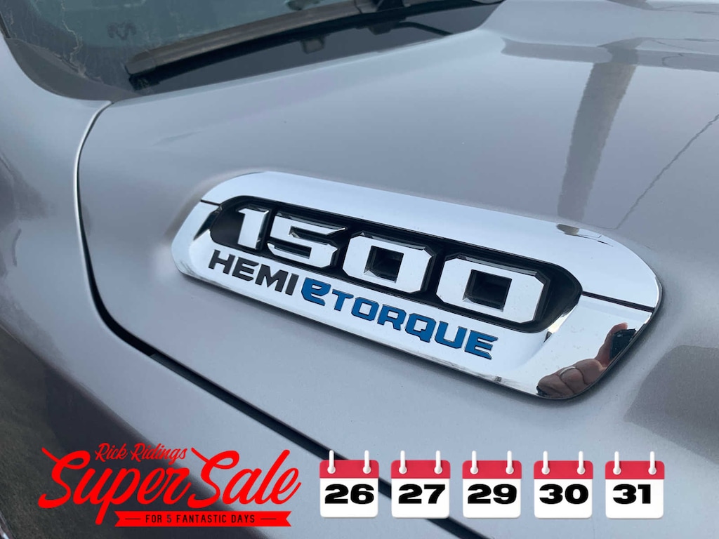 Active Noise Control System, Heavy Duty Engine Cooling, Passive Tuned Mass Damper, GVWR: 7,100 lbs, Dual Rear Exhaust w/Bright Tips, HEMI Badge, 23 Gallon Fuel Tank, 18 Aluminum Spare Wheel, Rear Window Defroster, Blind Spot & Cross Path Detection, Rain Sensitive Windshield Wipers, ParkSense Front/Rear Park Assist w/Stop, Power Adjustable Pedals w/Memory, Rear Power Sliding Window, Front LED Fog Lamps, Heated Second Row Seats, LED Reflector Headlamps, Foam Bottle Insert (Door Trim Panel), Radio: Uconnect 5 Nav w/12.0 Display, Remote Tailgate Release, Auto High Beam Headlamp Control, Electric Shift On Demand Transfer Case, Front Door Accent Lighting, 2nd Row In Floor Storage Bins, Rear Door Accent Lighting, WHEEL TO WHEEL SIDE STEPS, MOPAR Spray In Bedliner, MOPAR 4 Adjustable Cargo Tie-Down Hooks, Pick-Up Box Lighting, TRI-FOLD TONNEAU COVER, TRANSMISSION: 8-SPEED AUTOMATIC (8HP75).